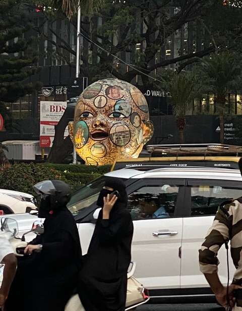 „The Baby’s Head“ – eine Skulptur aus Fiberglas von Chintan Upadhyay. Oft gelesen als künstlerischer Blick auf das urbane Leben in Mumbai.